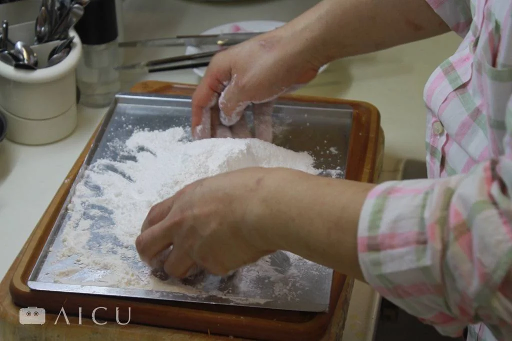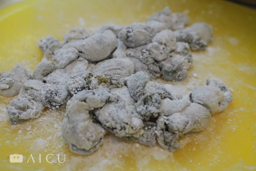 三合粉:麵粉、地瓜粉、太白粉,三種照比例混合之後,就擁有乾爽的麵衣。