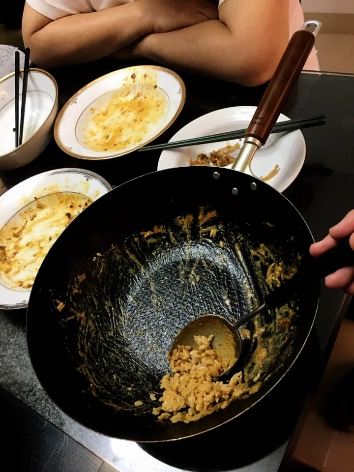 - 用AlCU日本28公分黑鐵中華鍋爆香洋蔥粒