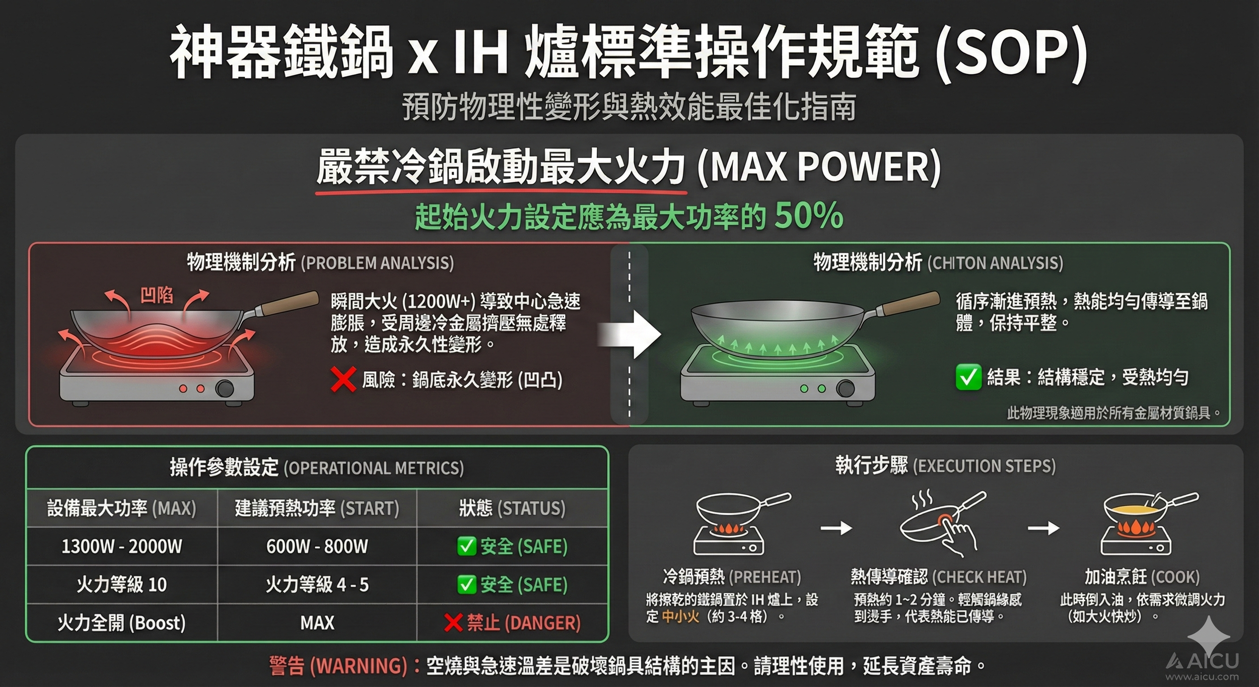 神器鐵鍋|IH爐使用教學,熱鍋別開最大火力,容易膨脹變形喔。